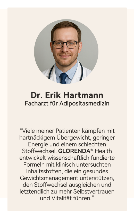 โWir sind Deutschlands fรผhrendes Endokrinologie-Forschungsteam, und viele von uns haben persรถnlich Erfahrungen mit รbergewicht und den damit verbundenen Komplikationen gemacht. Im Laufe der Jahre haben wir auch die auf dem Markt verfรผgbaren gรคngigen Methoden zur Gewichtsreduktion bewertet, einschlieรlich Injektionstherapien, Kapseln und oraler Abnehmpillen. Ihre Ergebnisse waren jedoch oft begrenzt, und viele gingen mit Vertrรคglichkeitsproblemen einher.Diese Erfahrungen motivierten uns, einenย sichereren, natรผrlicheren und effektiveren Ansatz fรผr Stoffwechselgesundheit und Gewichtsmanagement zu entwickeln. Nach mehr als 12 Jahren Forschung begann unser Team mit Selbsttests dieses Programms und รผberwand erfolgreich die Einschrรคnkungen traditioneller Einweg-Interventionen, die hรคufig gastrointestinale Nebenwirkungen verursachen.Durch die dual-pathway-Strategie โ Unterstรผtzung der Appetitkontrolle und Fettstoffwechsel sowie Berรผcksichtigung der Hautfestigkeit nach Gewichtsverlust โ beobachteten wir signifikante Verbesserungen bei Kรถrpergewicht und Stoffwechselgesundheit, ohne Jo-Jo-Effekt oder unerwรผnschte Reaktionen.Anschlieรend fรผhrten wir groรangelegte Studien und klinische Versuche mit รผber 5.000 Teilnehmern durch, die die Wirksamkeit des ๐ฎ๐ณ๐ถ๐๐๐๐๐ผยฎ๐๐ค๐ง๐๐ฃ๐ด๐ฎ ยท ๐๐ฒ๐ฟ๐ฏ๐ฒ๐ฟ๐๐ ร ๐ต๐ผ๐ฟ+ 10-๐๐ฃ-๐ ๐๐๐ฏ๐๐ป๐ฐ๐ฒ๐ฑ ๐ก๐ฎ๐ฃ๐ค ๐๐๐ ๐ง๐จ๐ง๐๐๐๐ฅ-๐๐๐๐๐ต in Bezug auf Stoffwechselregulation, Appetitkontrolle und allgemeine Gesundheit weiter bestรคtigten. Die Vorteile waren besonders ausgeprรคgt bei รผbergewichtigen oder adipรถsen Erwachsenen รผber 40 Jahren.Unterstรผtzt durch aktuelle medizinische Forschung hat ๐ฎ๐ณ๐ถ๐๐๐๐๐ผยฎ๐๐ค๐ง๐๐ฃ๐ด๐ฎ ยท ๐๐ฒ๐ฟ๐ฏ๐ฒ๐ฟ๐๐ ร ๐ต๐ผ๐ฟ+ 10-๐๐ฃ-๐ ๐๐๐ฏ๐๐ป๐ฐ๐ฒ๐ฑ ๐ก๐ฎ๐ฃ๐ค ๐๐๐ ๐ง๐จ๐ง๐๐๐๐ฅ-๐๐๐๐๐ต die Qualitรคtsprรผfung der Germanyย Health Discussion Organization erfolgreich bestanden. Sicherheit, Wirksamkeit und Konformitรคt wurden offiziell anerkannt.Diese Formel stellt einen wissenschaftlichen Fortschritt gegenรผber herkรถmmlichen Gewichtsreduktionsprodukten dar, die oft erhebliche gastrointestinale Belastungen mit sich bringen. Sie bietet eine natรผrliche, sichere und effektive Lรถsung fรผr alle, die umfassende Stoffwechselunterstรผtzung und eine nachhaltige langfristige Gewichtsregulation suchen.โ